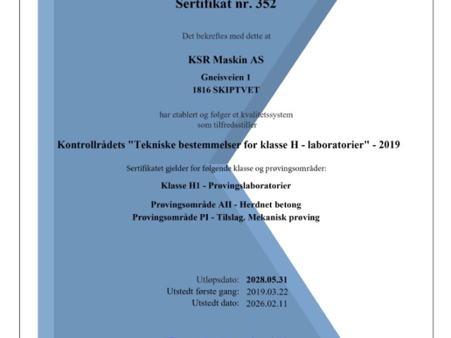 KSR Maskin AS har et laboratorium som driver spesielt med kvalitetssikring og analyser i sand, stein og pukkproduksjon. Laboratorium er sertifisert av Kontrollrådet som tilslagslaboratorium i klasse PI og AII.